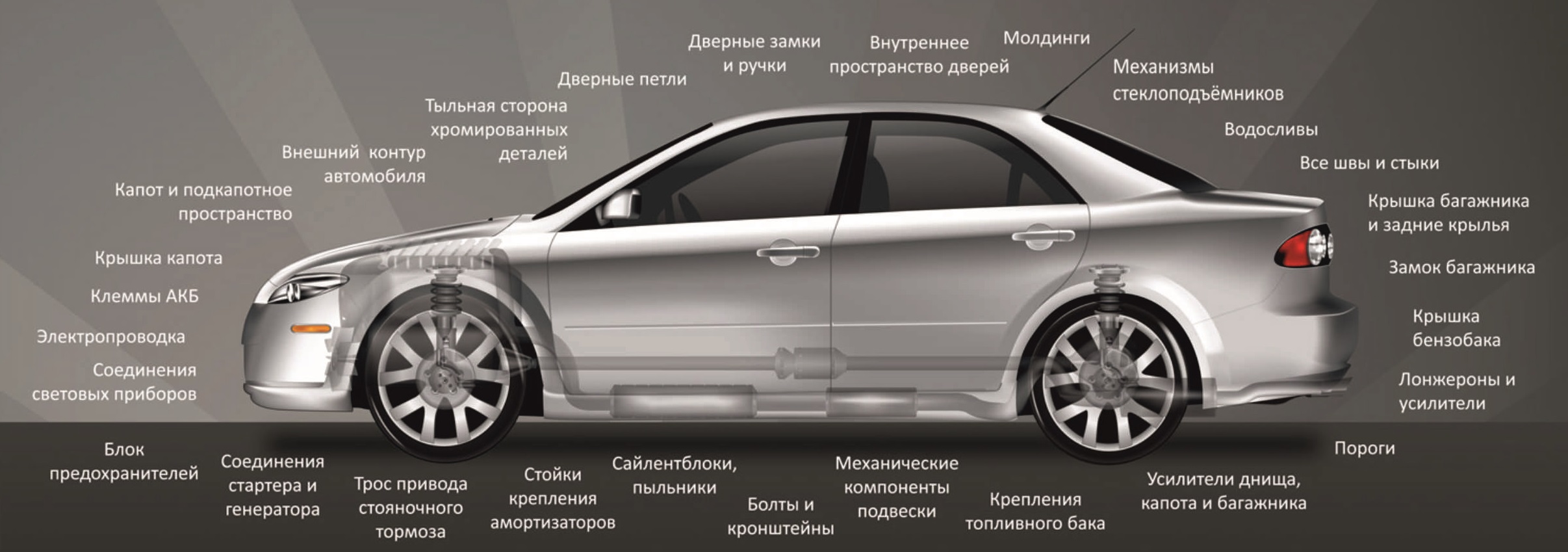 | Надолго ли хватает защитных свойств состава? | В скрытых полостях - на несколько лет. Днище рекомендуется повторно обрабатывать раз в два года. Это дешевле и быстрее. |